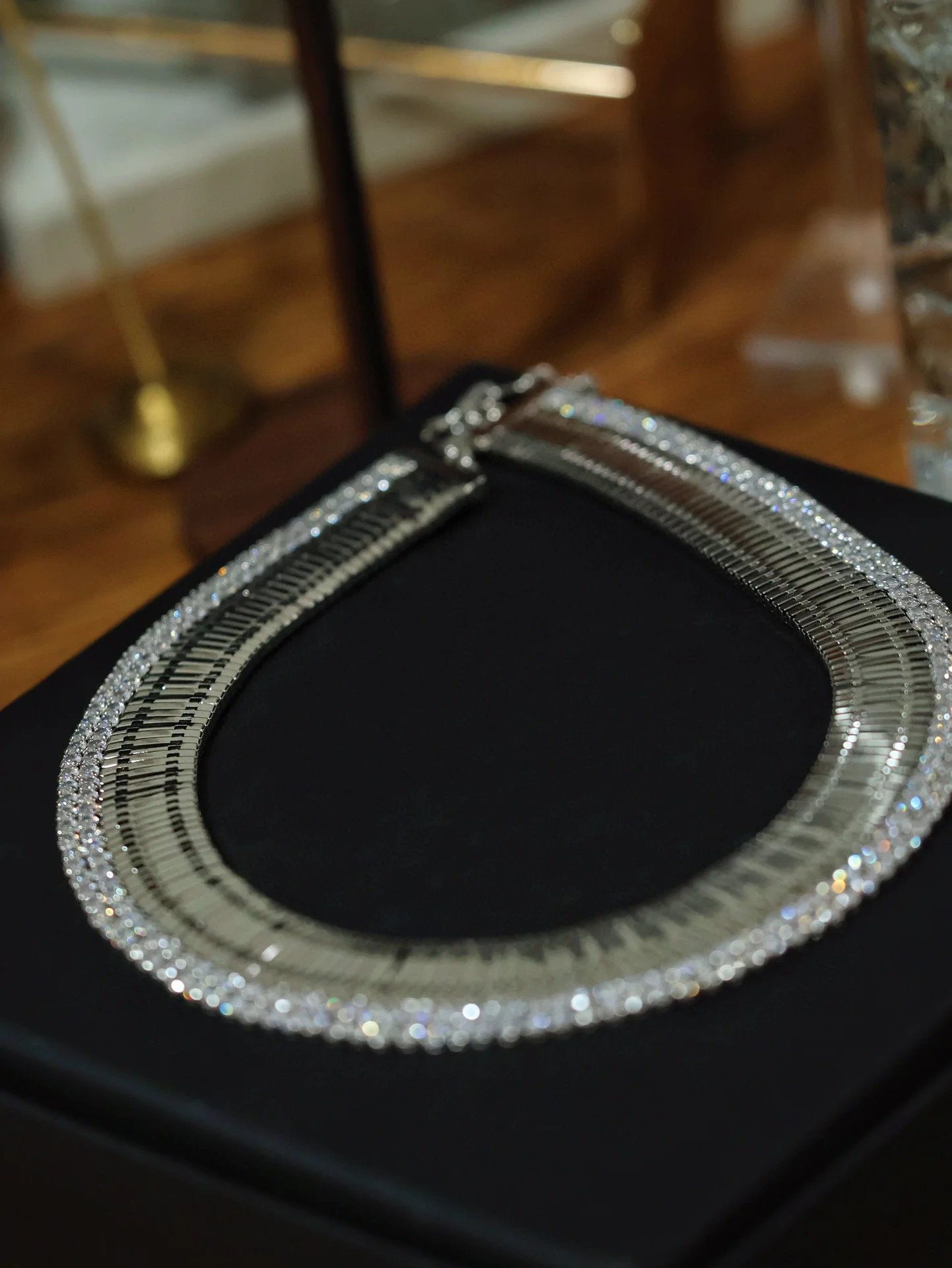 Роскошное широкое металлическое колье с кристаллами огромное ожерелье широким - купить