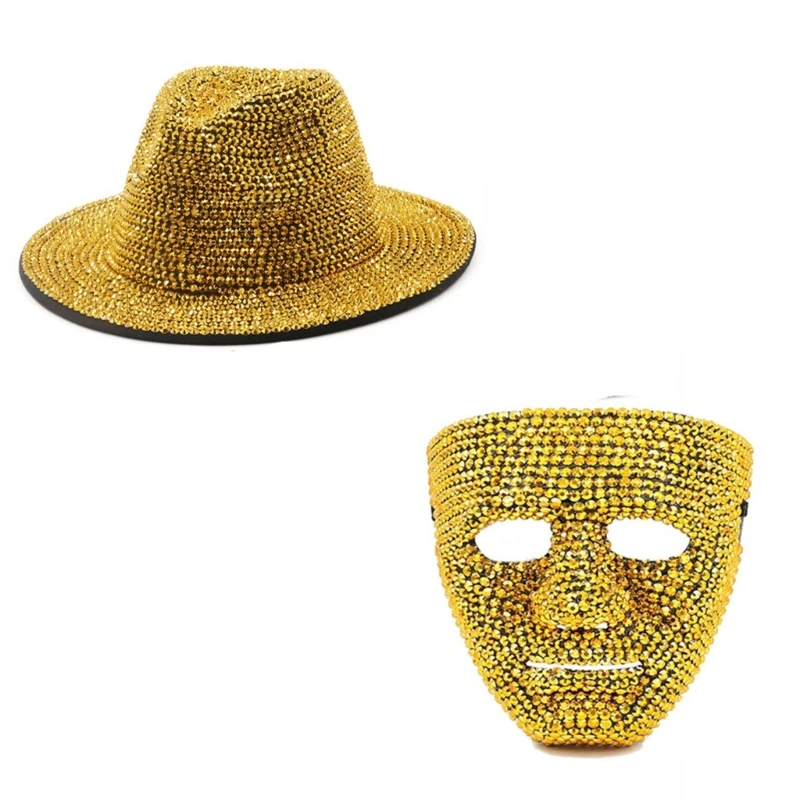 Шляпа Федора со стразами маскарадная маска костюм комплект для сценических - купить