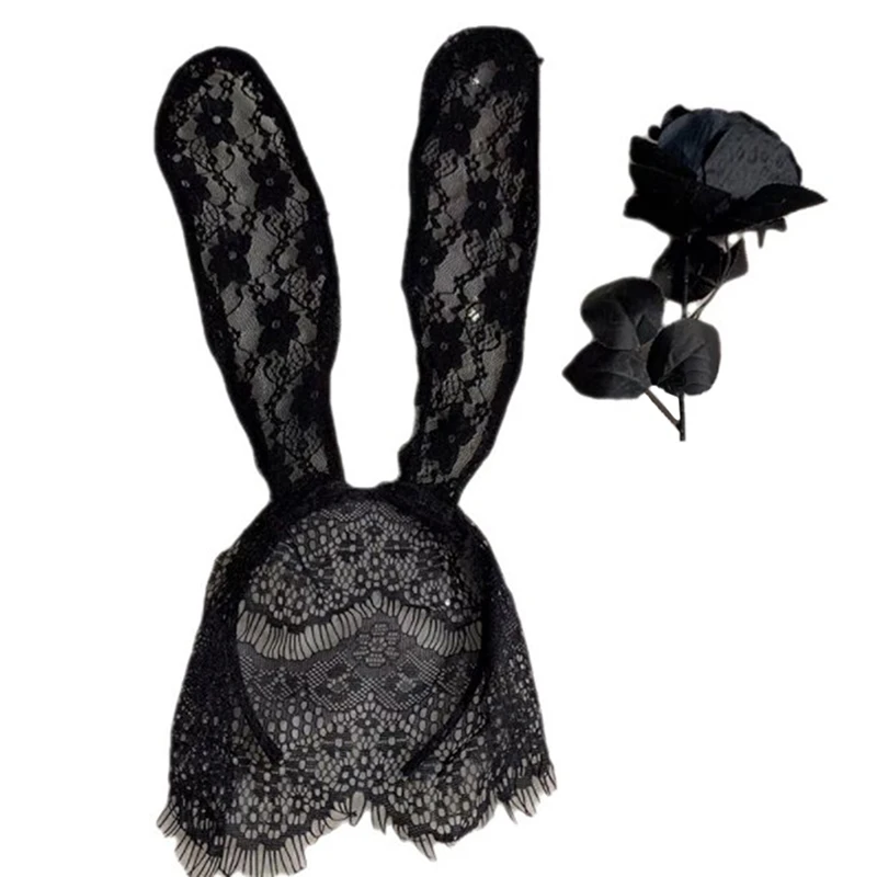 Готическая кружевная Фата с заячьими ушками Черная Женская аксессуары для волос - купить