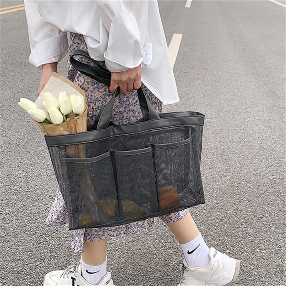 Портативная Сетчатая Сумка большой емкости многоразовая Женская пляжная сумка - купить