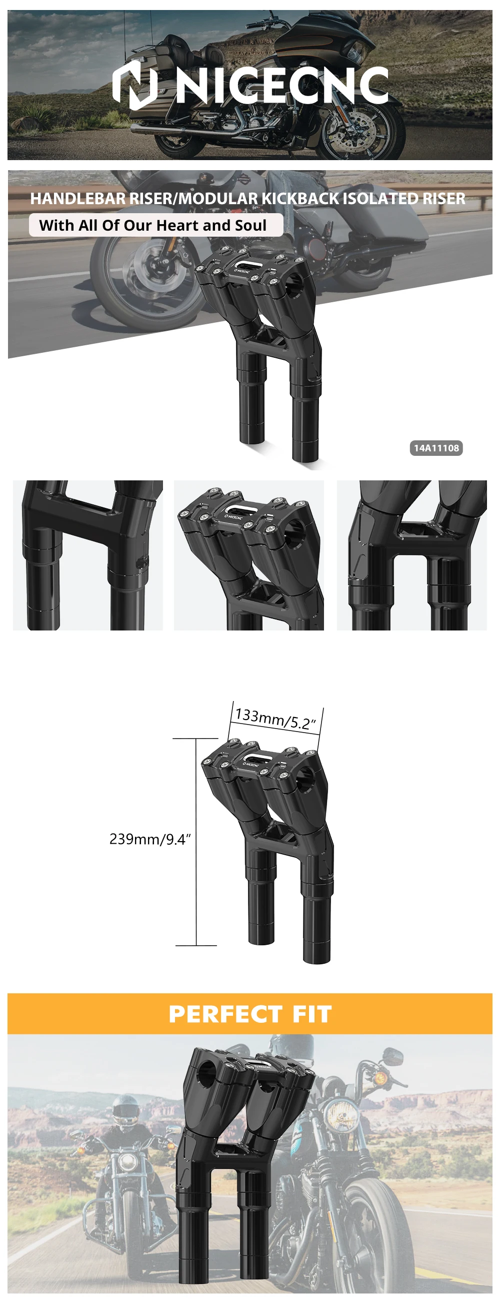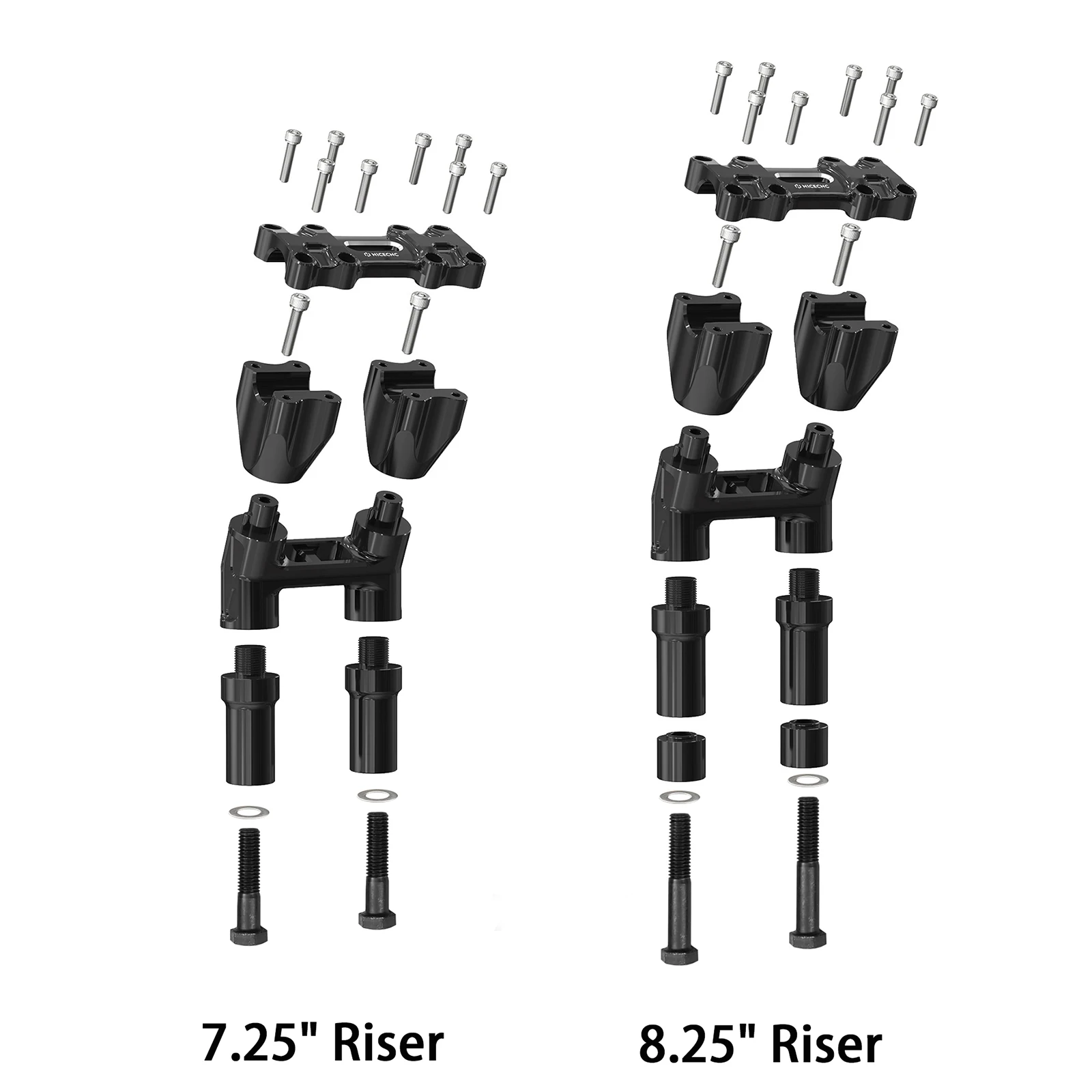 【Регулируемая высота】 Модульная и съемная конструкция позволяет настраивать подступенки для достижения желаемой высоты. Вы можете поднять планки в общей сложности на 8,25 дюйма (7,25 дюйма без прокладок), это обязательная часть для всех, кто хочет обновить свой руль.