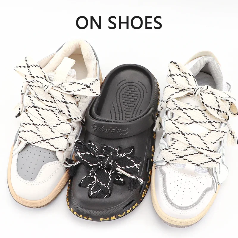 Плоские шнурки 2 5 см расширенные черно-белые для обуви парусиновые туфли тапочки - купить