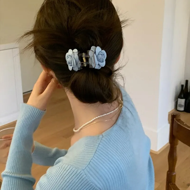 Отзывы о Корейский стиль тканый цветок Камелия акула зажим для конского хвоста оплетка