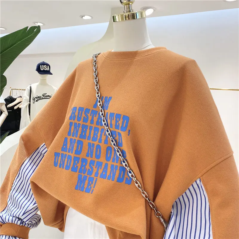 Милая полосатая рубашка с буквенным принтом свитшот большого размера в стиле - купить