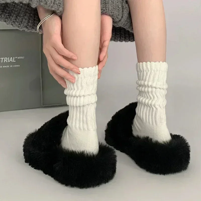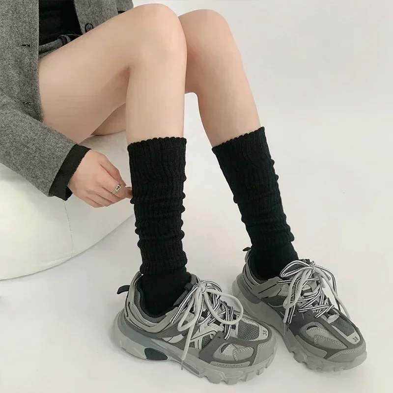 Отзывы о Женские вязаные длинные носки Y2K повседневные Черные белые свободные крючком