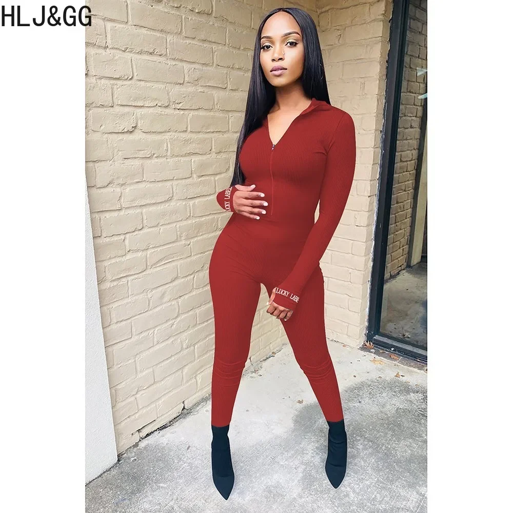 Женский комбинезон на молнии HLJ & GG повседневный Облегающий с длинным рукавом и - купить
