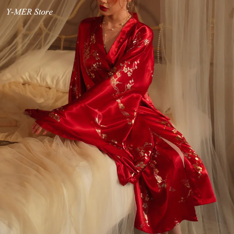 Отзывы о Халат-кимоно Женский атласный в китайском стиле пижама с большими рукавами