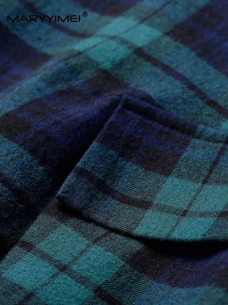 Отзывы о Женское платье-трапеция с отложным воротником и длинным рукавом в клетку