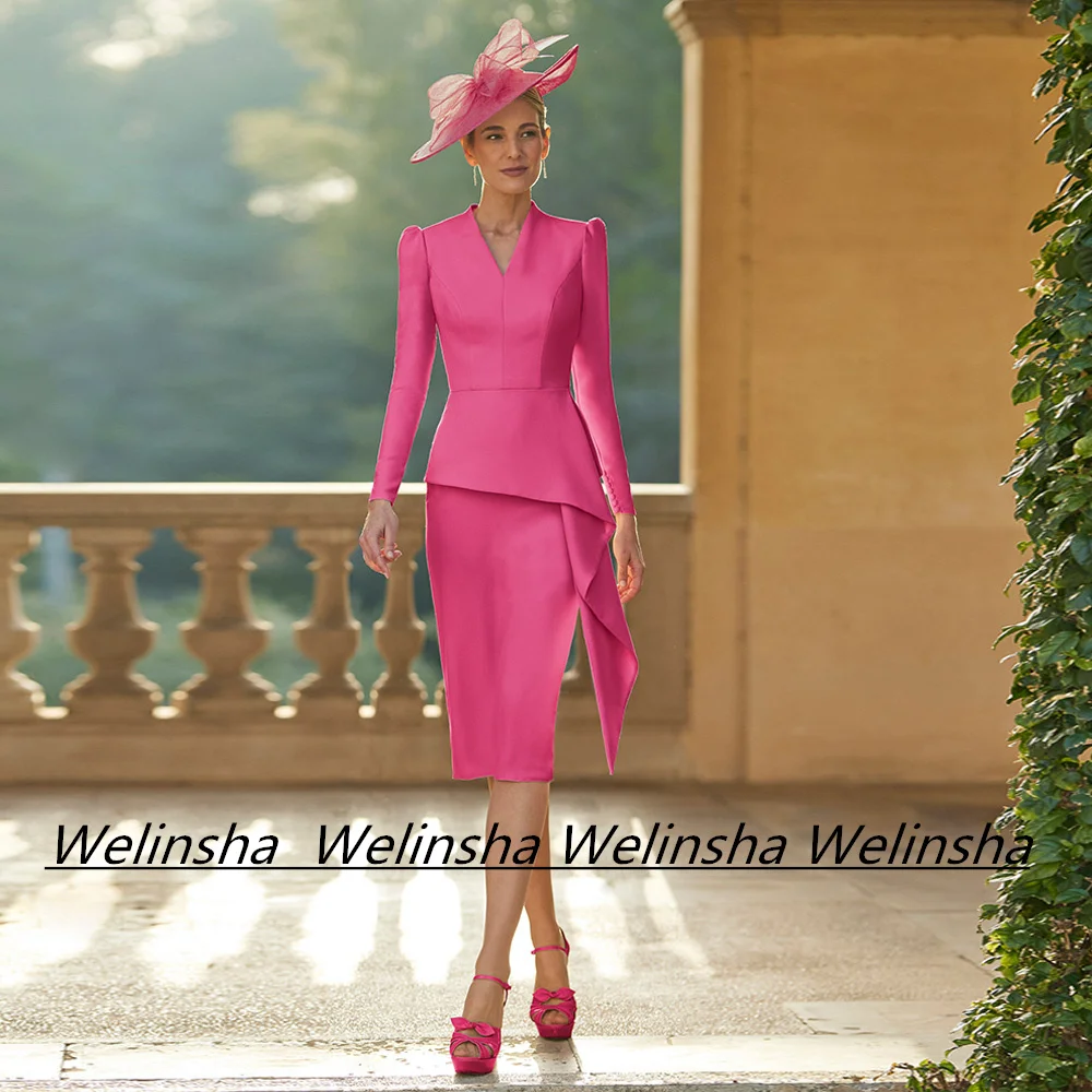 Платье для матери невесты простое тонкое платье до колен с V-образным вырезом и - купить