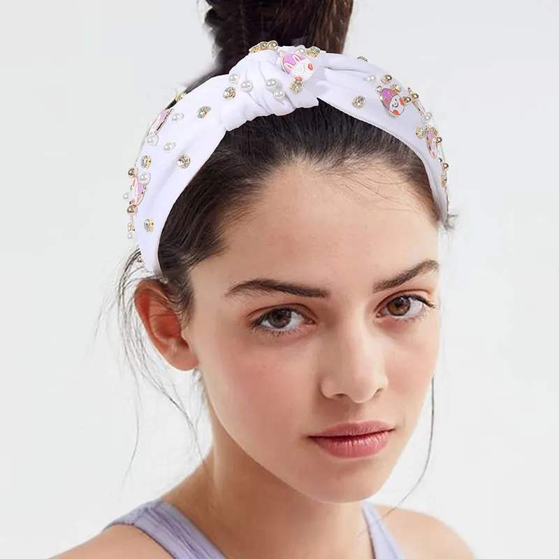 Женская однотонная повязка для волос с искусственным жемчугом - купить