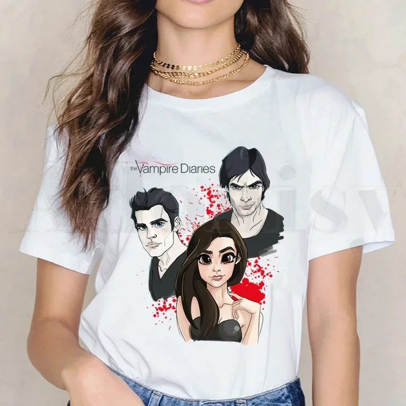 Дневники вампира Harajuku 90-х годов с графическим принтом и короткими рукавами - купить