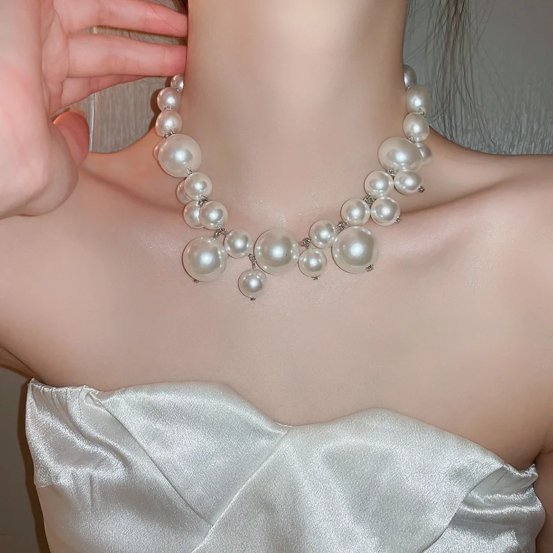 Жемчужное ожерелье для женщин 2024 Свадебные аксессуары цепочка на ключицы белое - купить