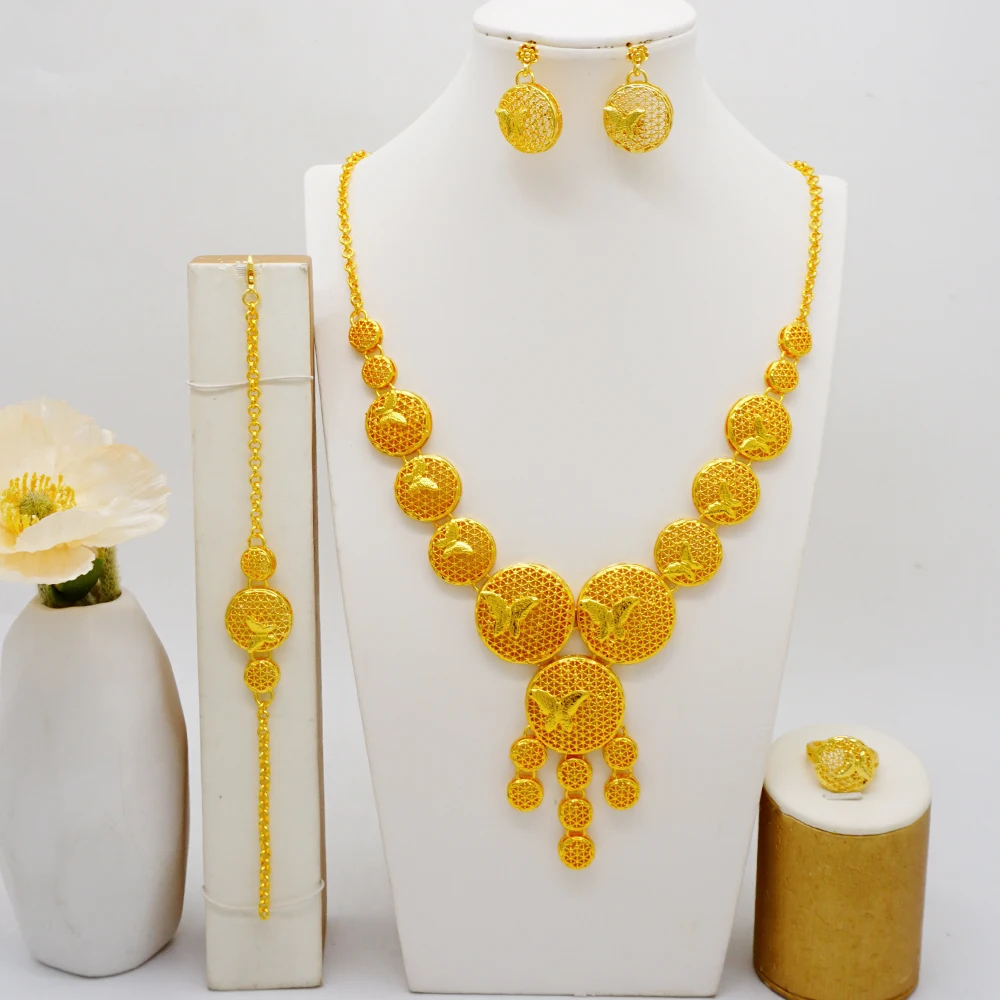 Комплект из колье серёг и браслета золотистого цвета - купить