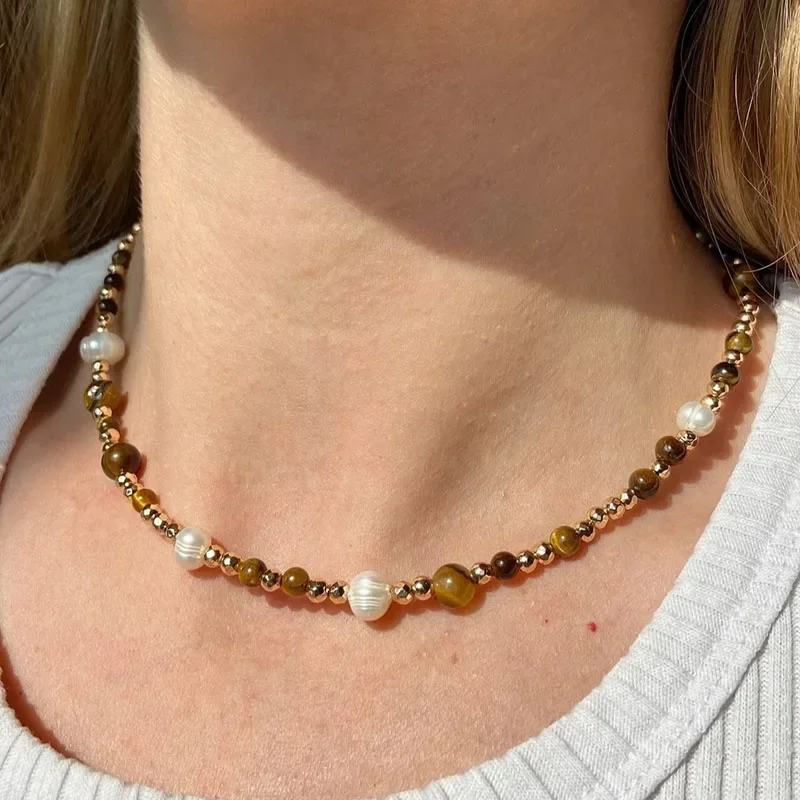 Радужное ожерелье-чокер с жемчугом и бусинами - купить