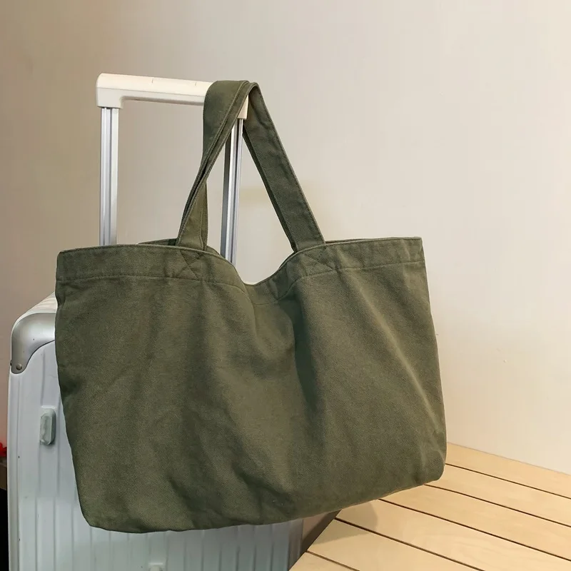 Большая вместительная однотонная Холщовая Сумка в стиле ретро Женская - купить