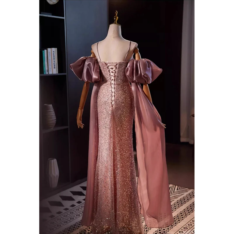 Отзывы о Вечерние платья больших размеров с юбкой-годе блестками и съемными рукавами
