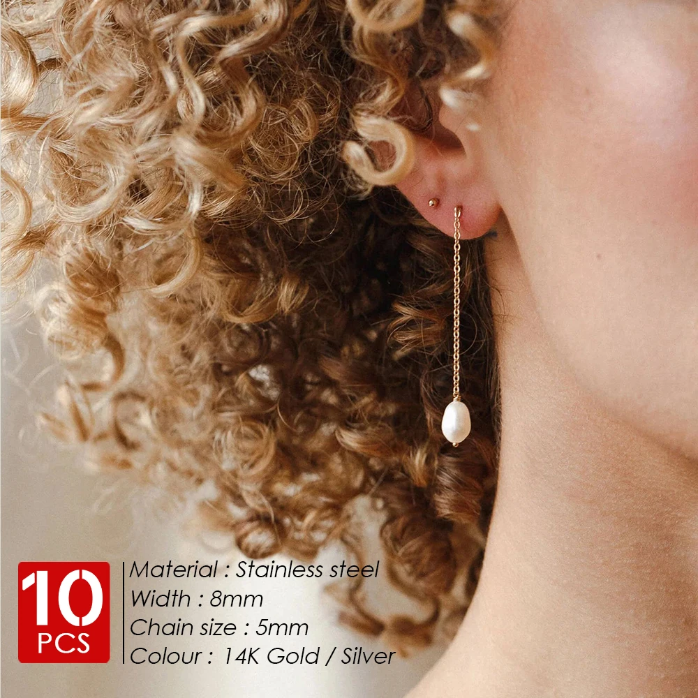 eManco 10 шт. серьги-цепочки с пресноводным жемчугом модные серьги из нержавеющей - купить