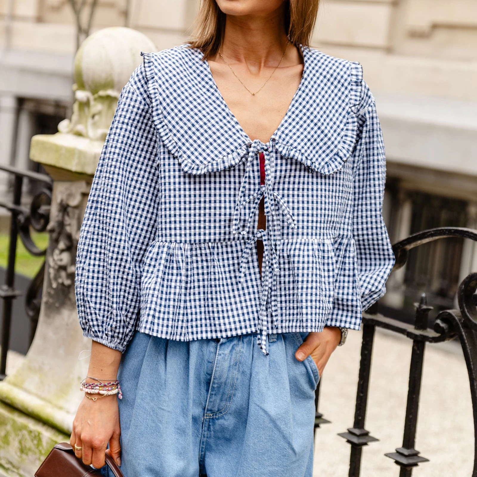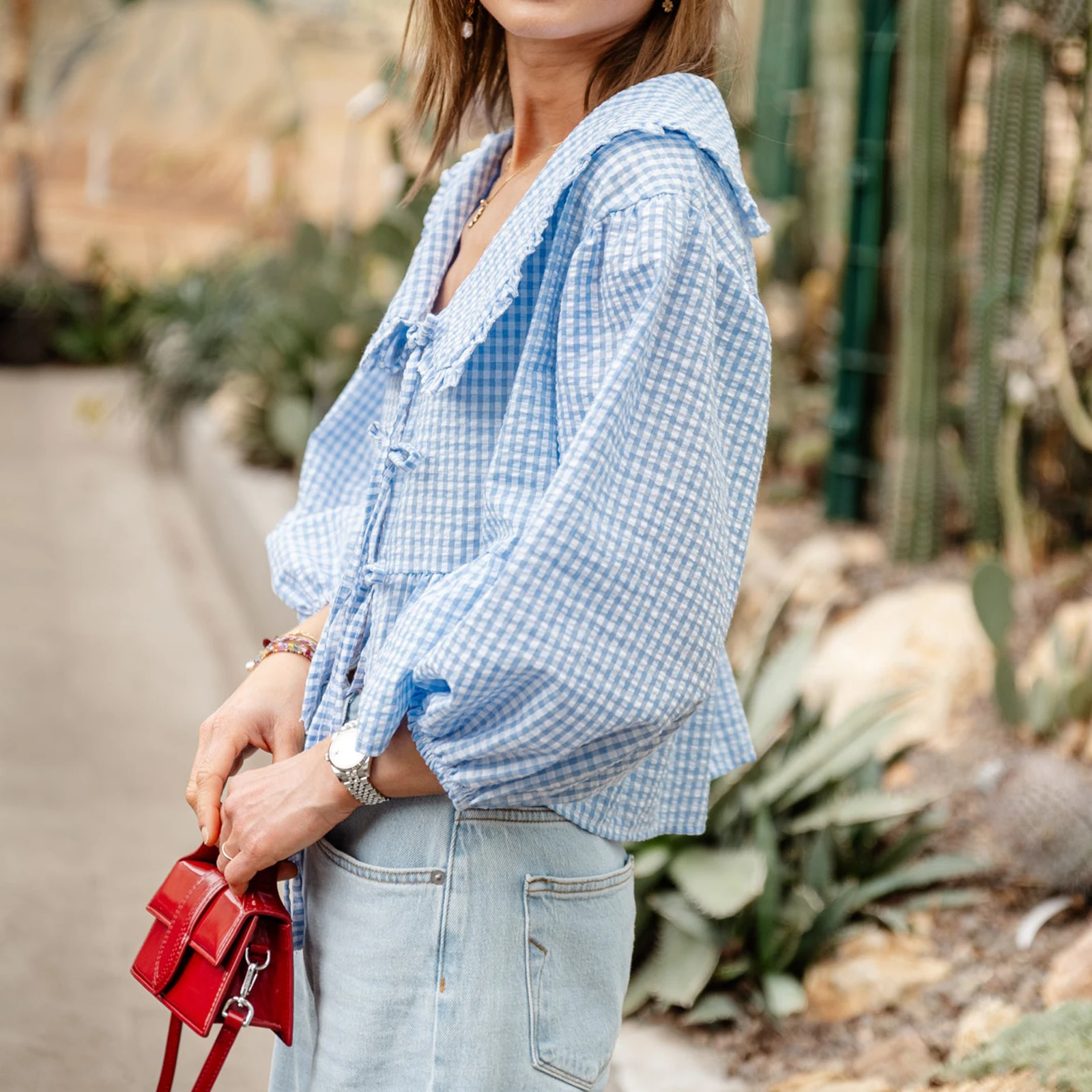 Отзывы о Женская рубашка в клетку Gaono летняя с длинными рукавами-фонариками кукольным