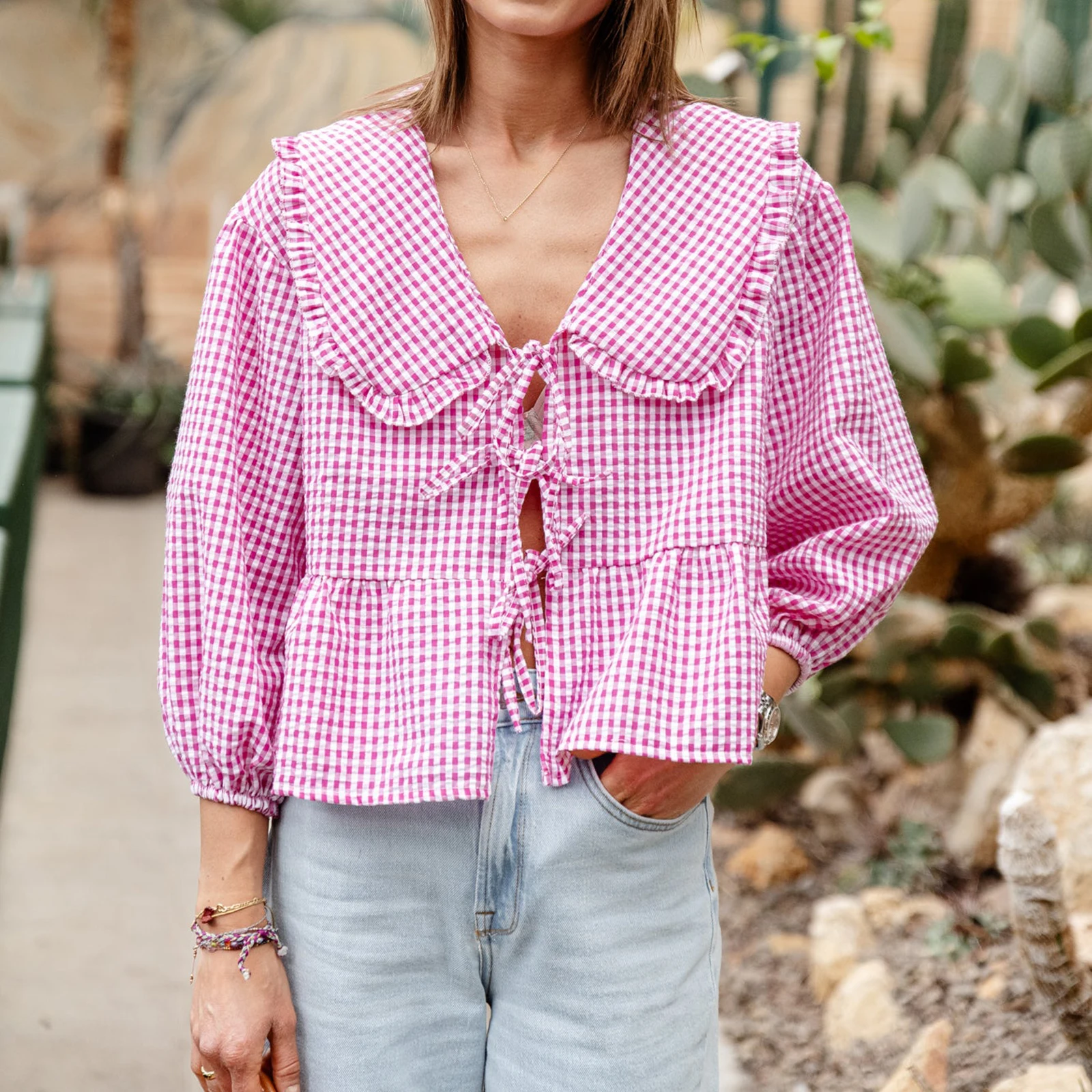 Женская рубашка в клетку Gaono летняя с длинными рукавами-фонариками кукольным - купить