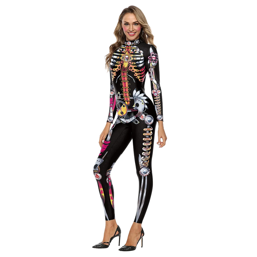 Комбинезон с металлическим скелетом модный костюм для косплея на Хэллоуин боди - купить