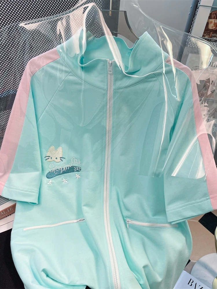 Летний спортивный костюм из двух предметов для женщин Свободный Топ с коротким - купить