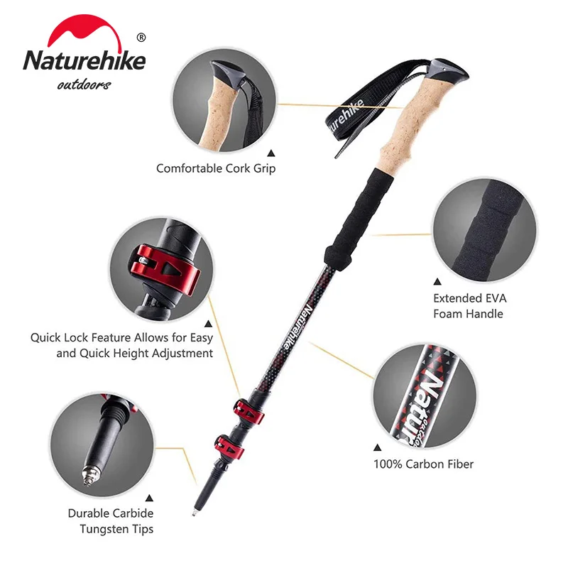 Отзывы о Палки для трекинга Naturehike из углеродного волокна 2 шт. складные телескопические