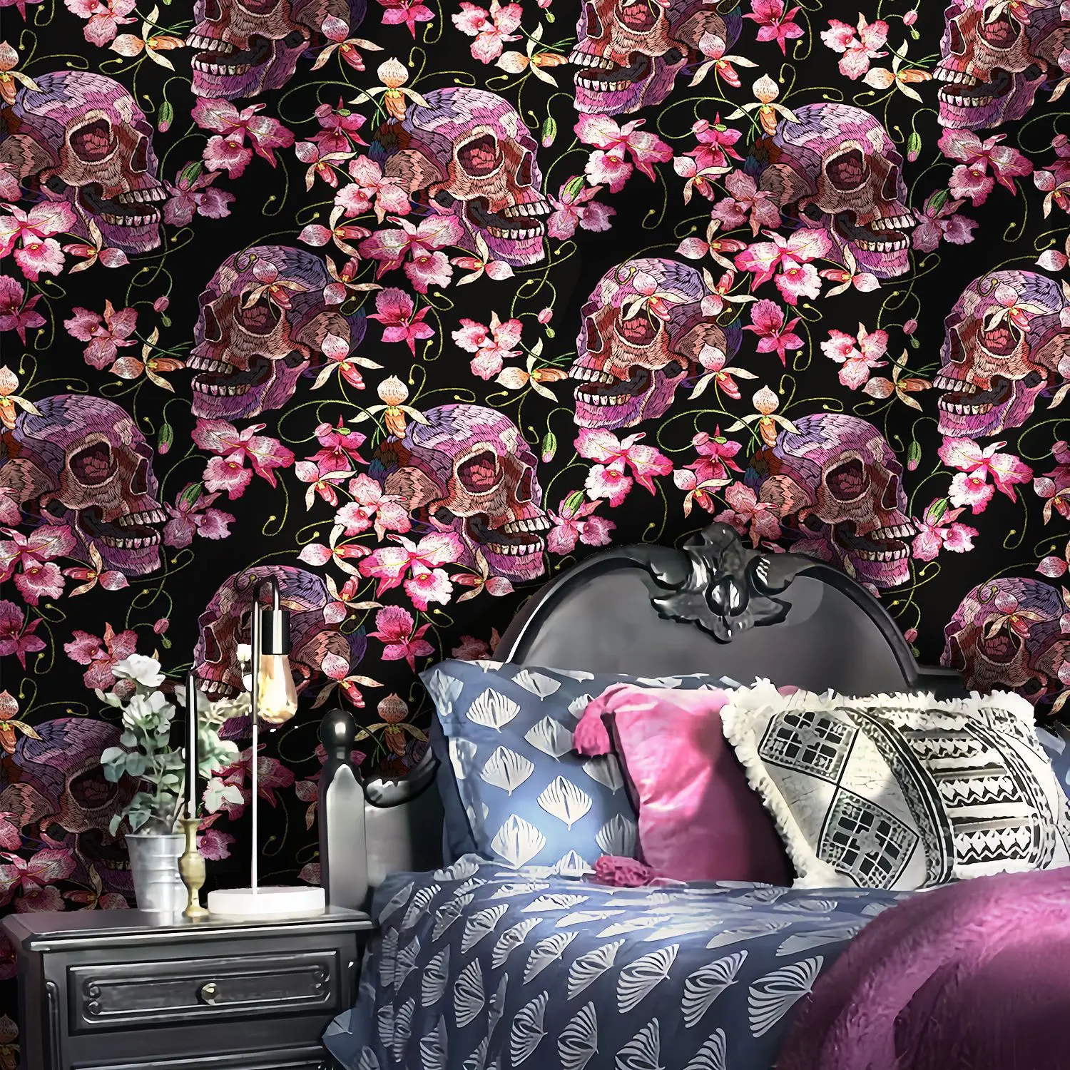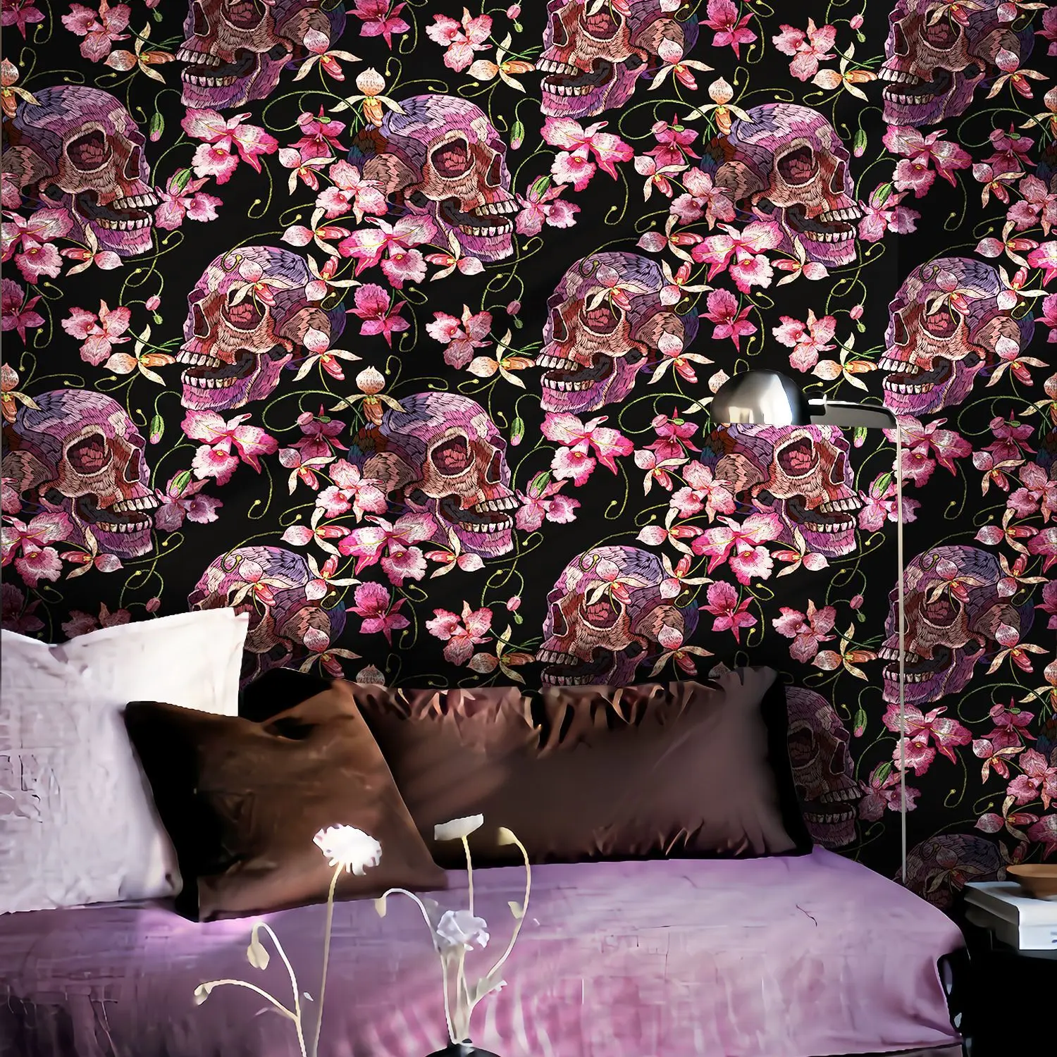 Отзывы о Обои с изображением черепа цветов и стиков виниловые обои рисунком