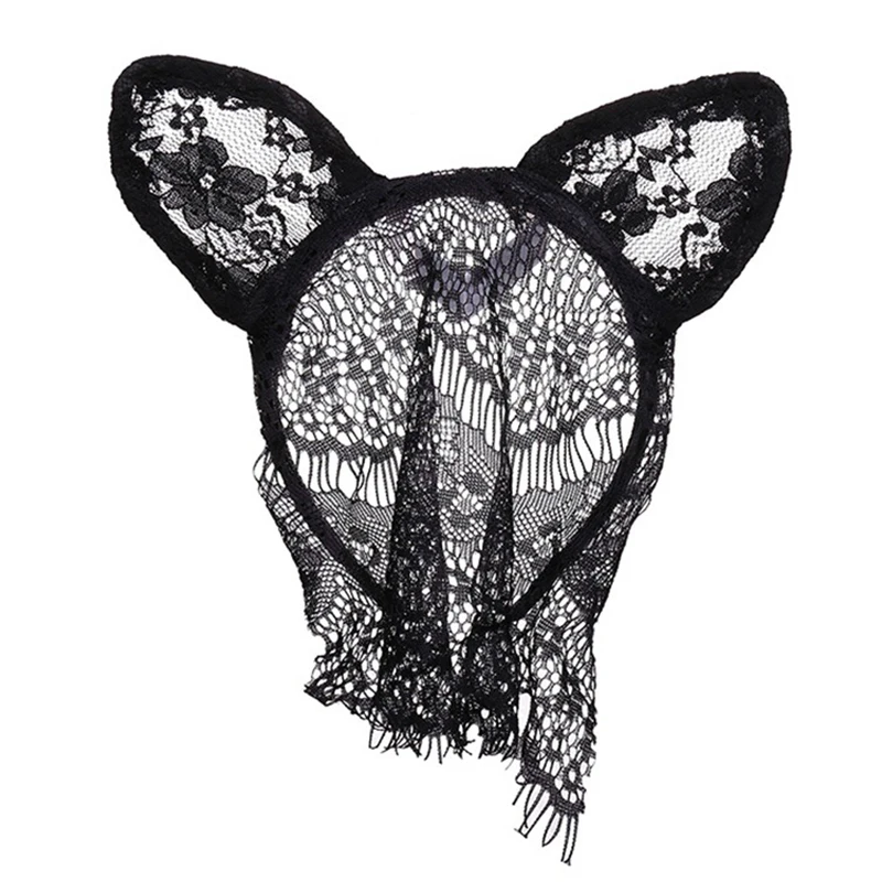 Сексуальные кружевные повязки на голову с кошачьими ушками черные для волос - купить