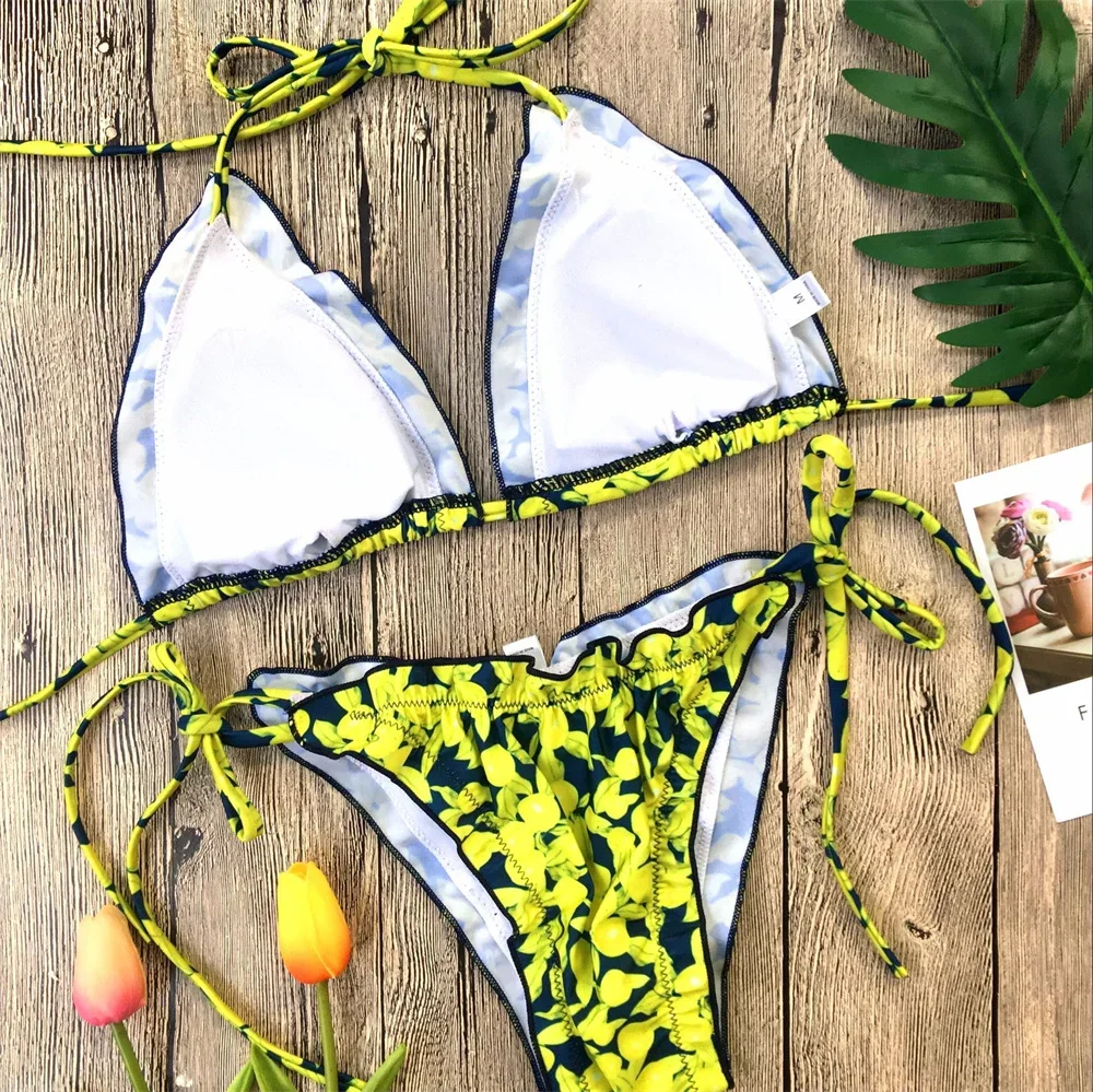 Отзывы о Желтый бикини с принтом и рюшами треугольный купальник стринги Y2K на шнуровке