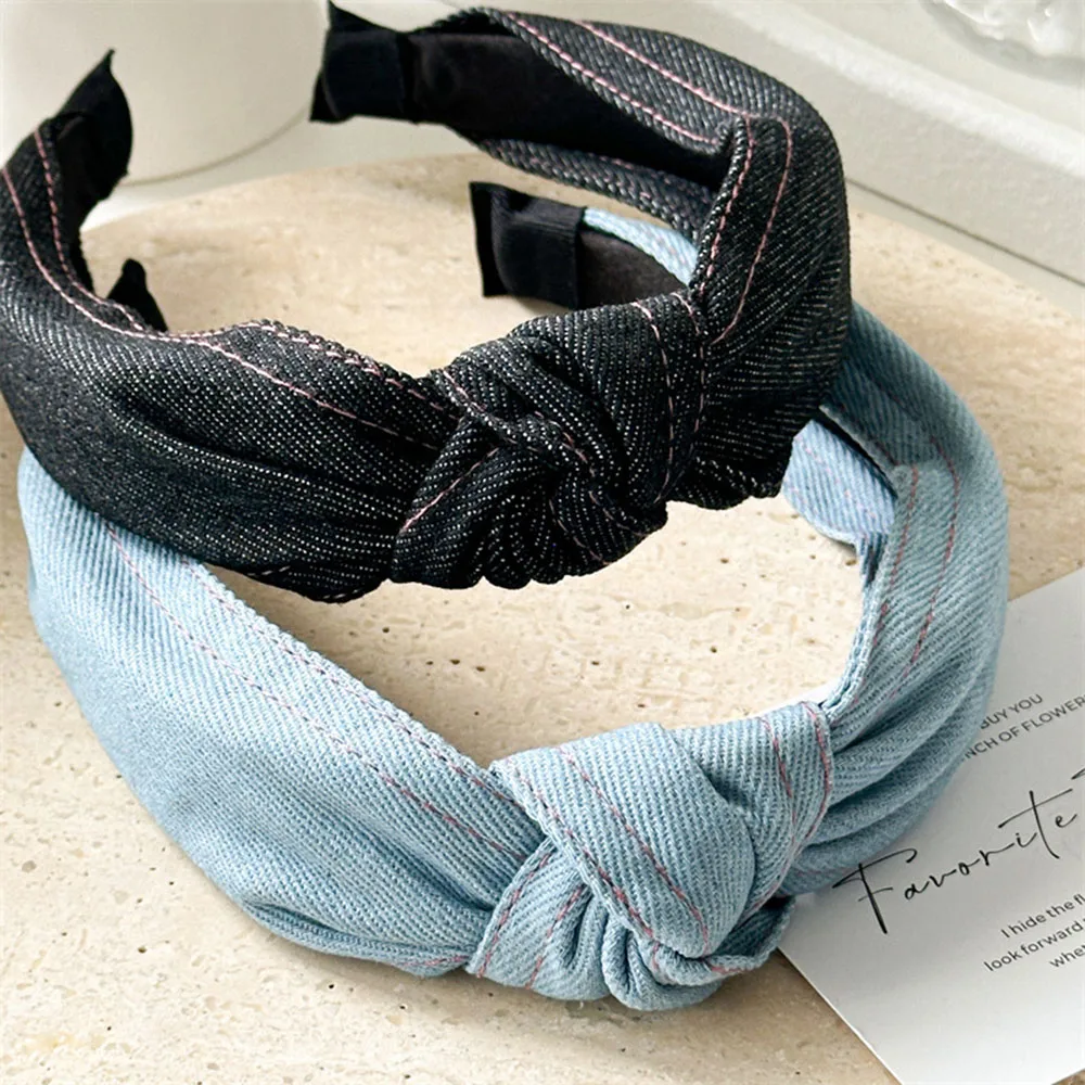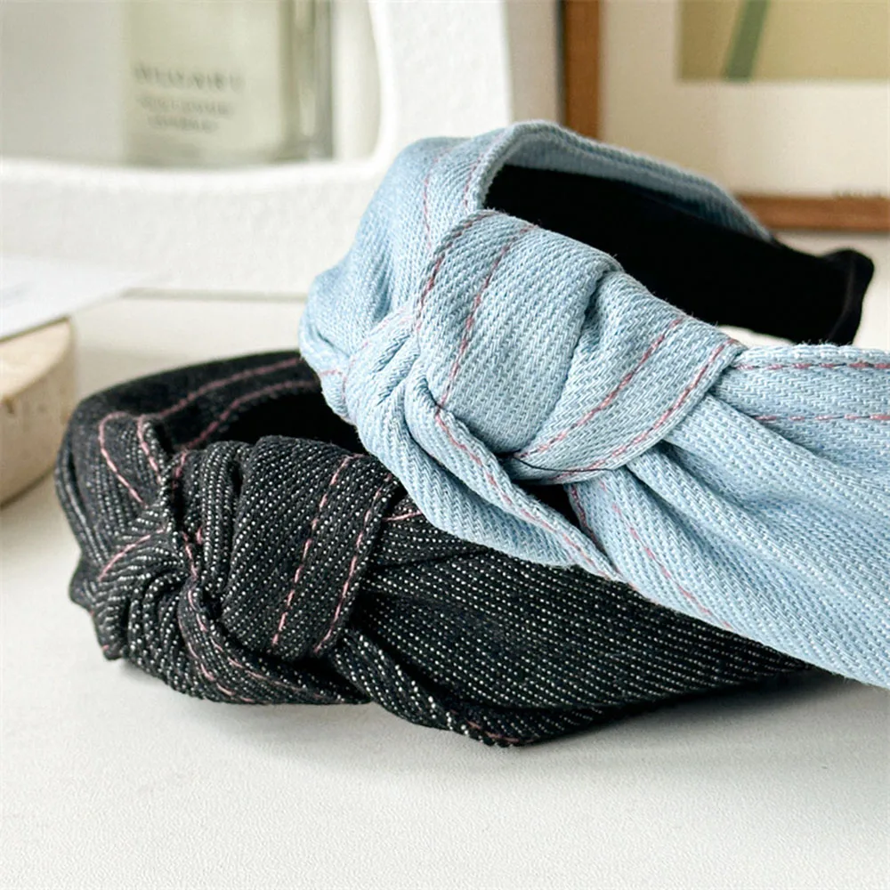 Отзывы о Повязка на голову женская из джинсовой ткани широкая однотонная в стиле ретро