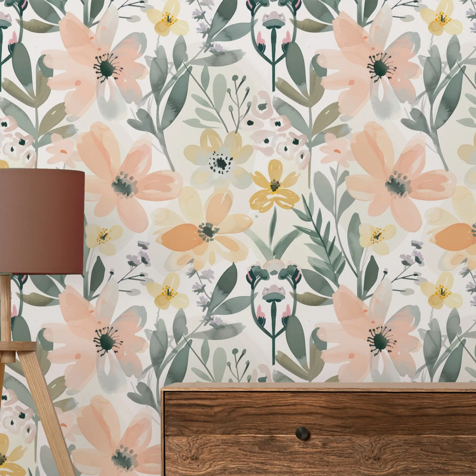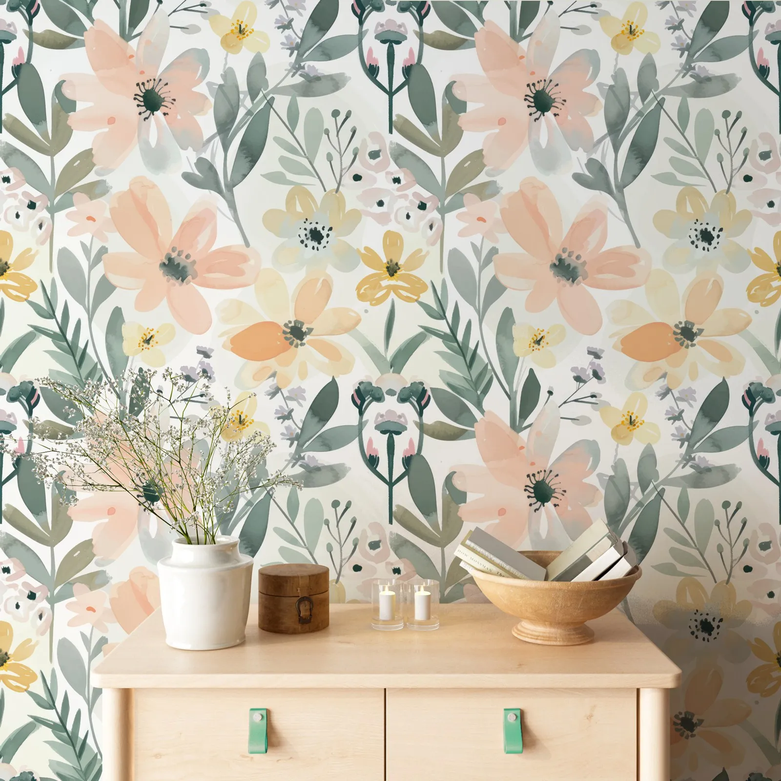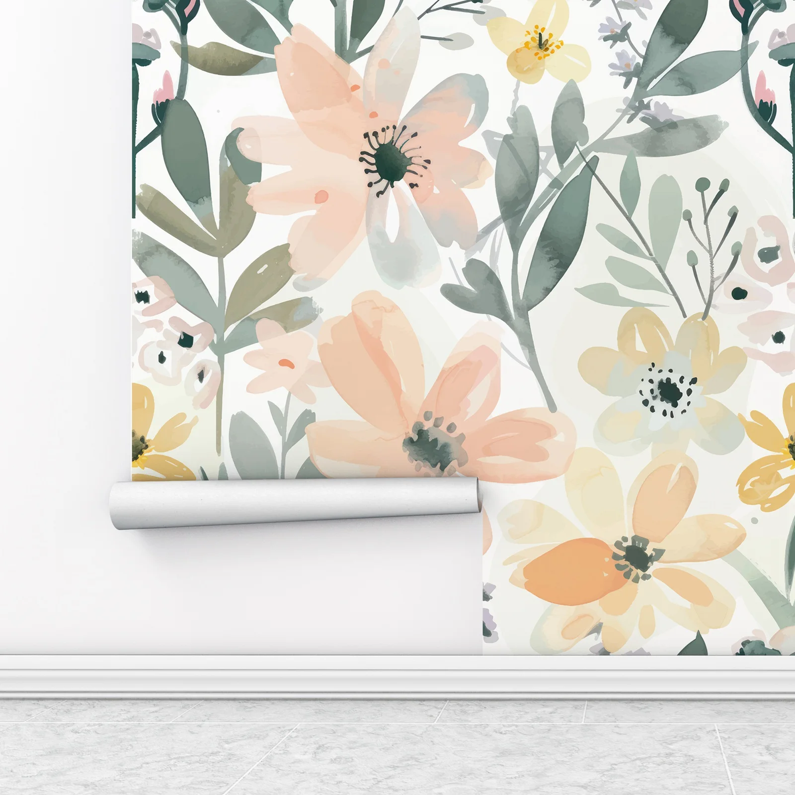 Обои акварельные с милыми цветами самоклеящиеся обои мягкие пастельные цвета - купить