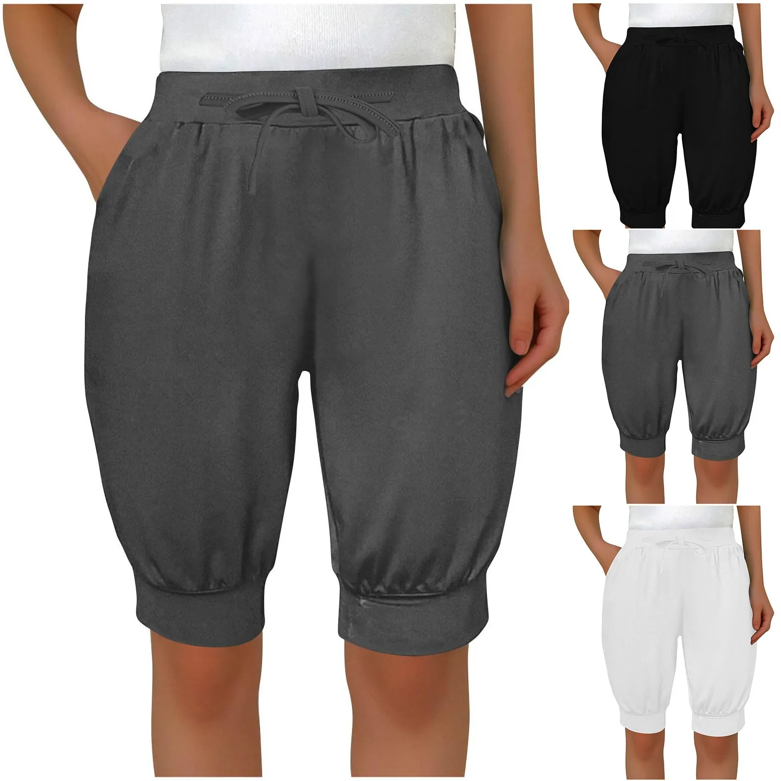 damskie spodnie modne letnie krótkie dresowe z kieszeniami w pasie spodenki ze sznurkiem wysokiej jakości wygodne pantalony - купить