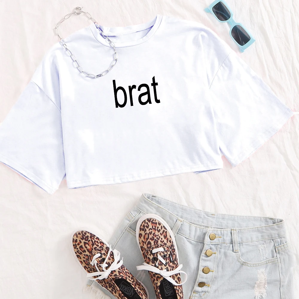 Brat Charli XCX 2024 Женские повседневные короткие рубашки с круглым вырезом - купить
