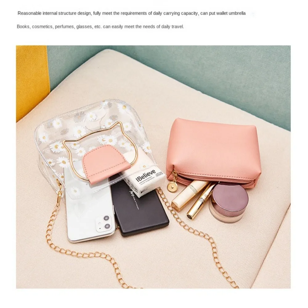 Отзывы о Практичные сумки из ПВХ с ручками в форме кошки металлическая прозрачная сумка