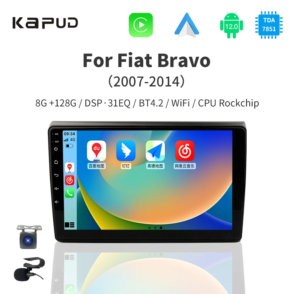 Отзывы о Мультимедийная магнитола Kapud на Android 12 для Fiat Bravo 2007 2010 2012 2014 навигация стерео DSP