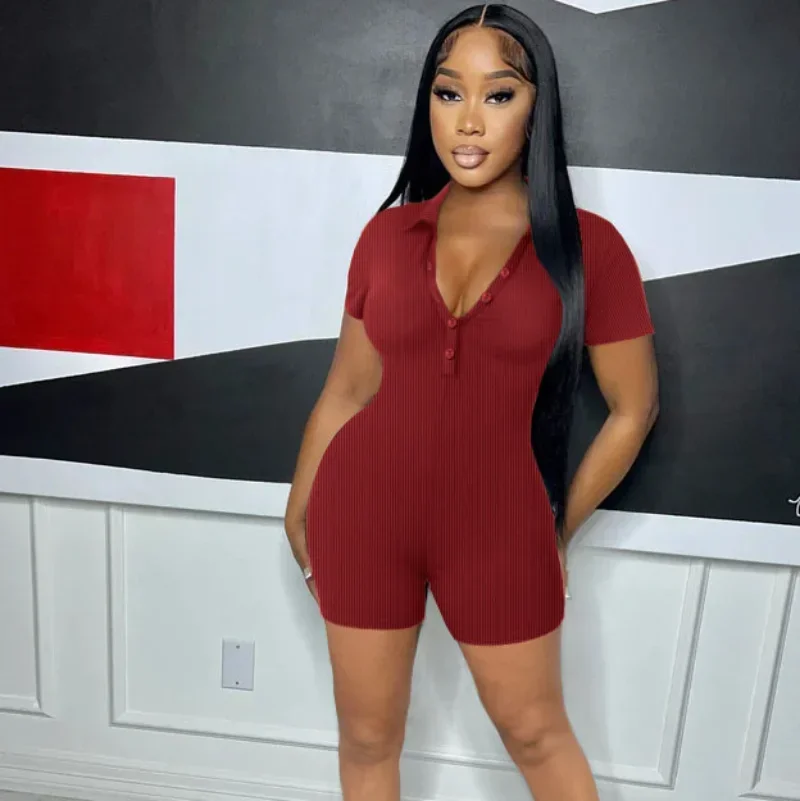 KEXU трикотажный ребристый эластичный комбинезон с отложным воротником 2024 Женская - купить
