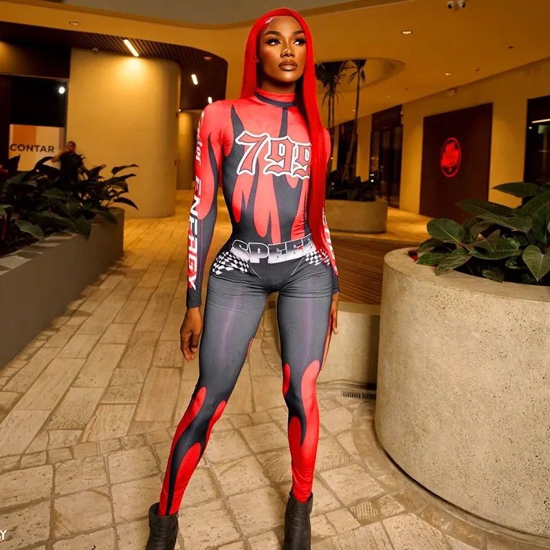 Модные спортивные женские комбинезоны с принтом Облегающий комбинезон длинным - купить