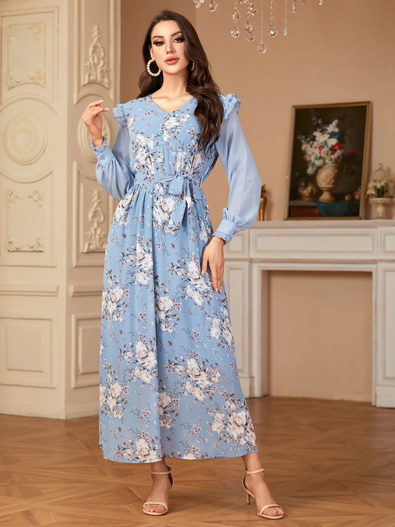 Отзывы о Женское винтажное платье с цветочным принтом длинным рукавом