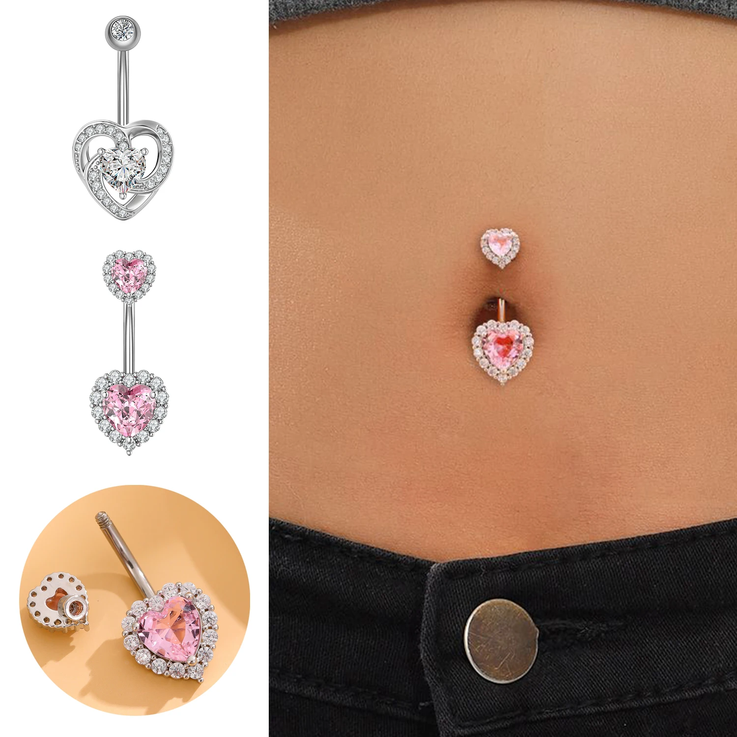 Отзывы о 1 шт. кольцо для живота с инкрустацией бриллиантами в форме сердца пупка