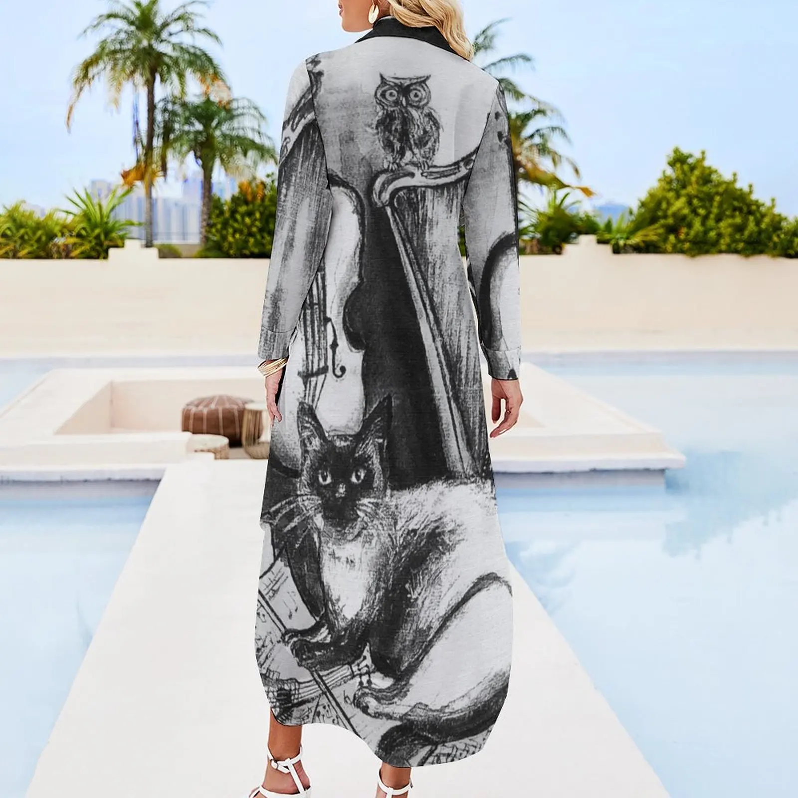 Музыкальная кошка и сова с музыкальными инструментами черно-белое акварель от - купить