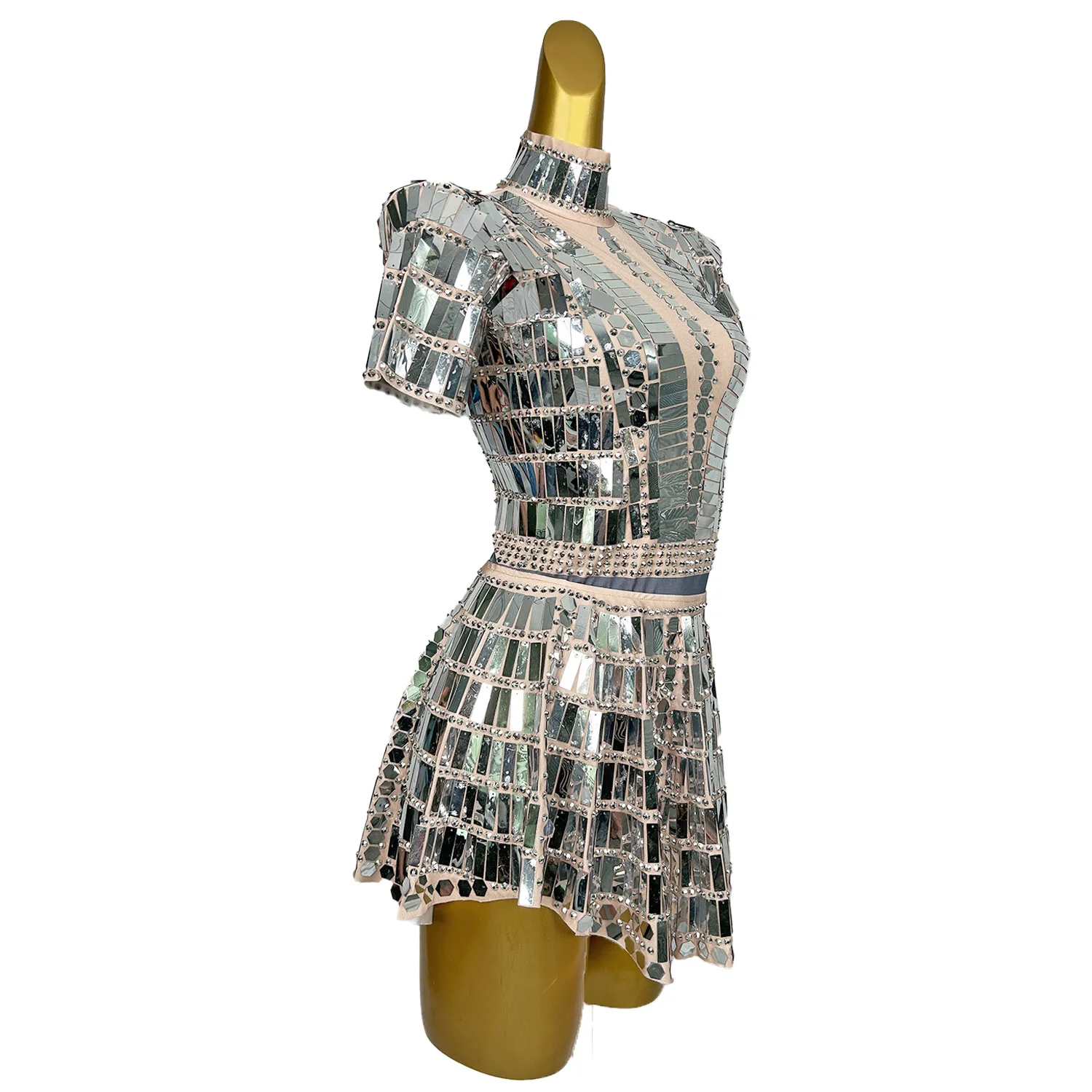 Сексуальное серебристое мини-платье с блестками для ночного клуба танцев 2 - купить