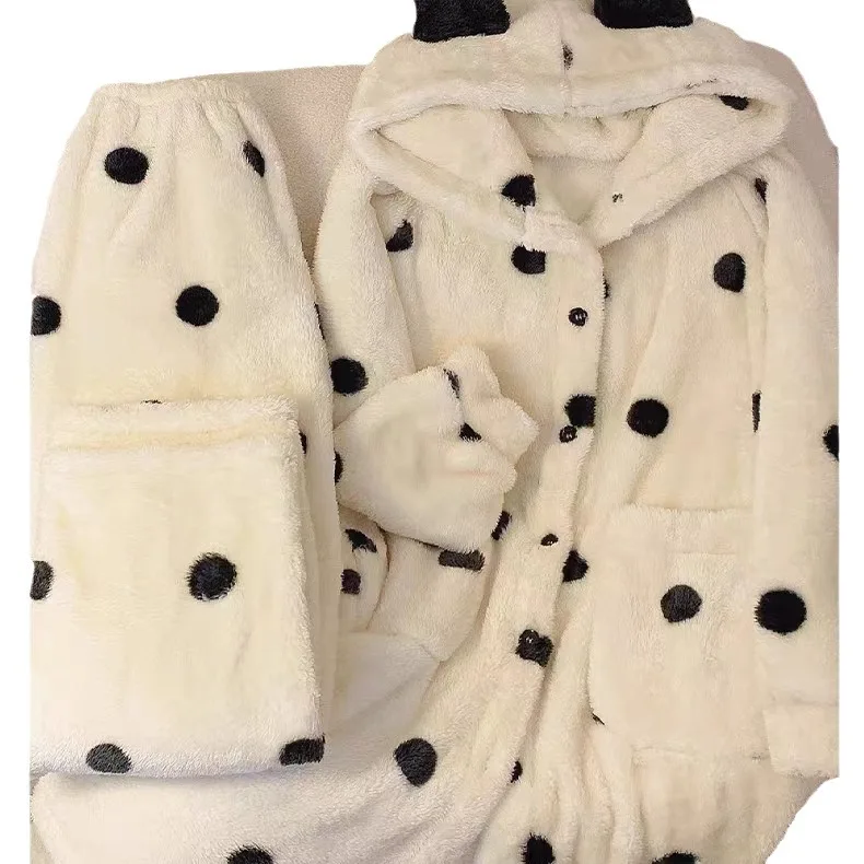 Милый костюм с принтом в горошек женская теплая ночная рубашка из кораллового - купить