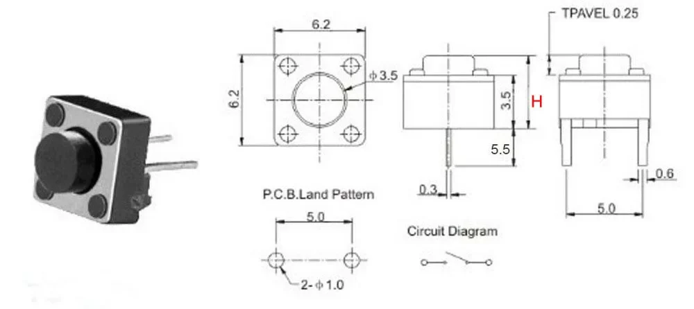 Отзывы о 50 шт. микро-переключатель 6x6x4 3 мм 6x6x5 мгновенная тактильная кнопка 2 P Pin DIP 6*6*4 6*6*5