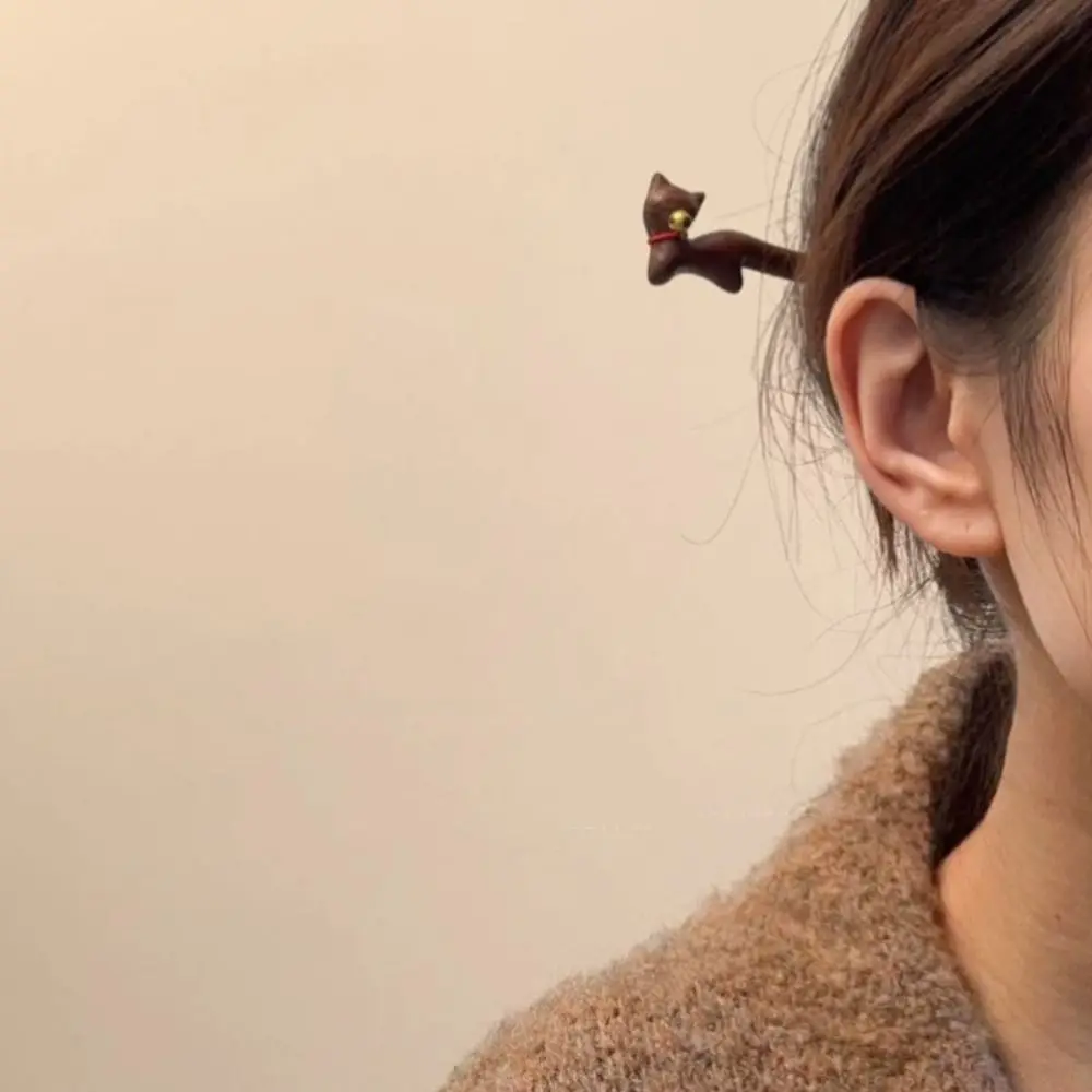 Деревянная заколка для волос в виде кота колокольчика головной убор зажим - купить