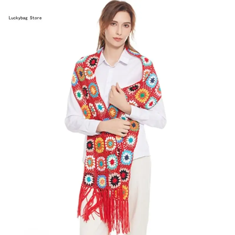 Отзывы о Женский шарф крючком вязаный с цветочным узором многофункциональный мягкий