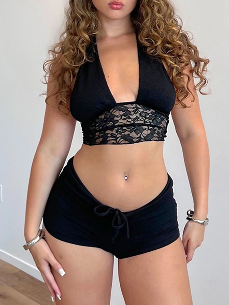 Сексуальный кружевной лоскутный короткий комплект с открытой спиной женские - купить