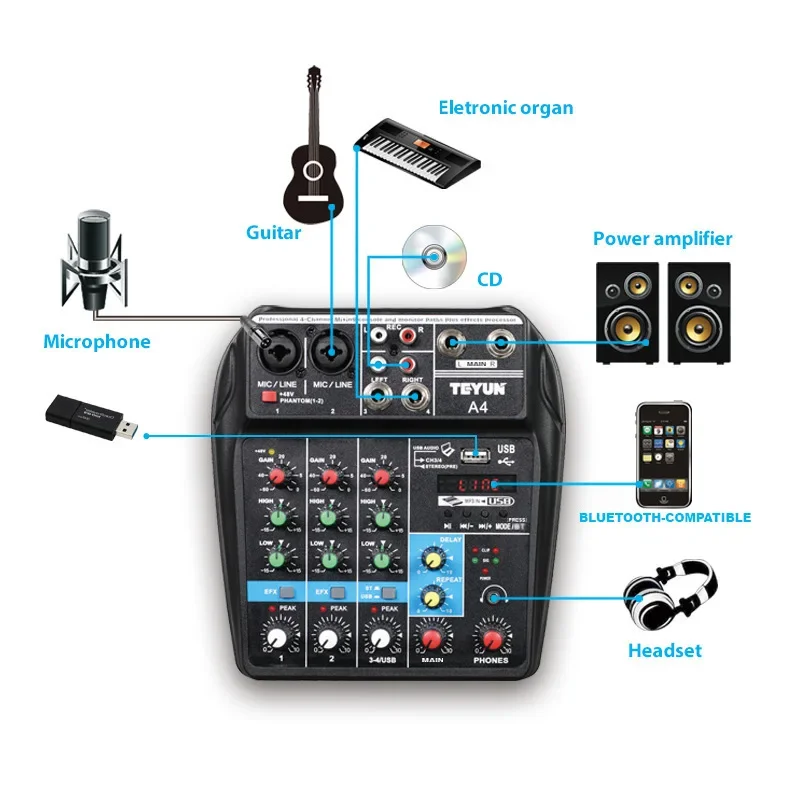 Звуковой микшер 4-канальная консоль для DJ-оборудования с Bluetooth 48 В - купить