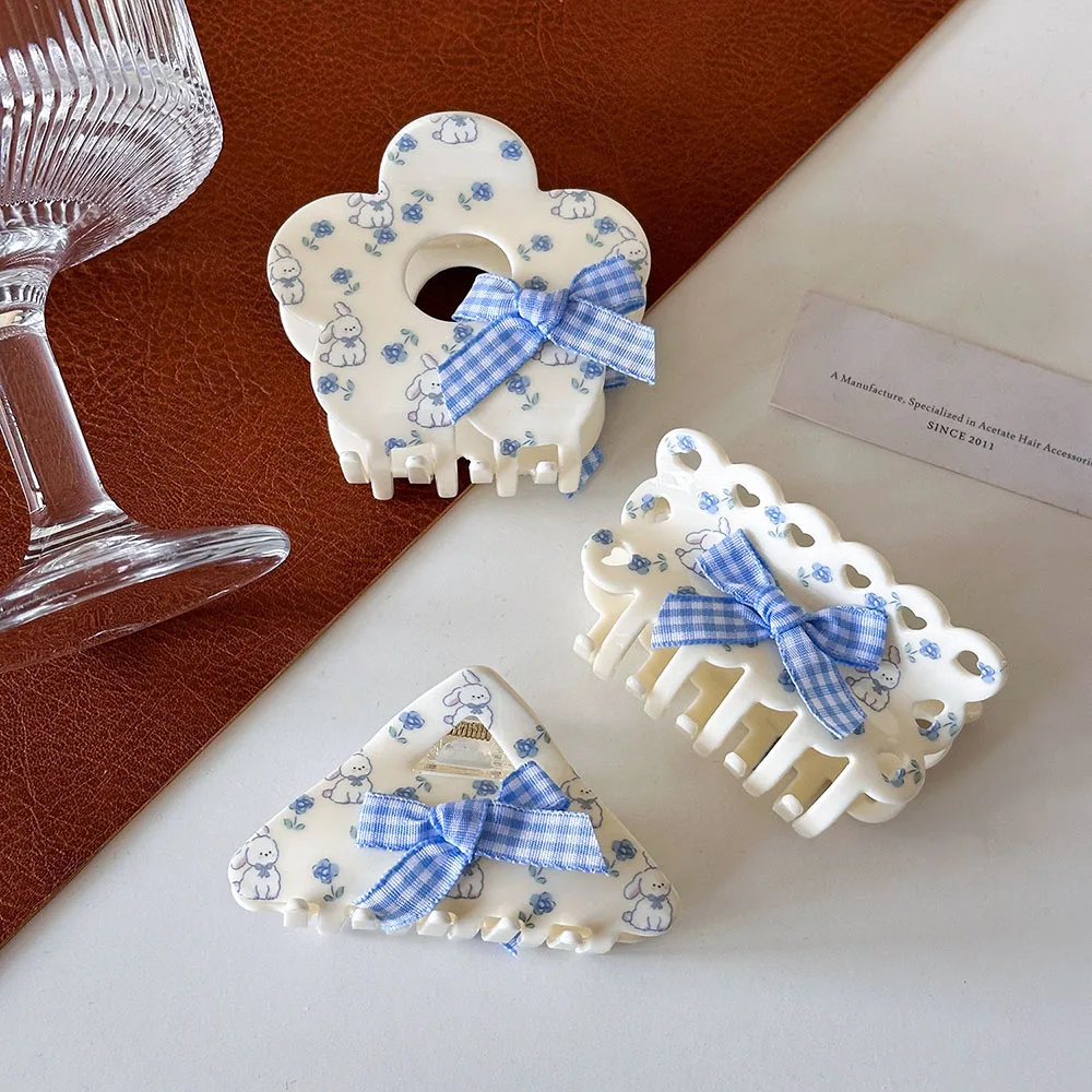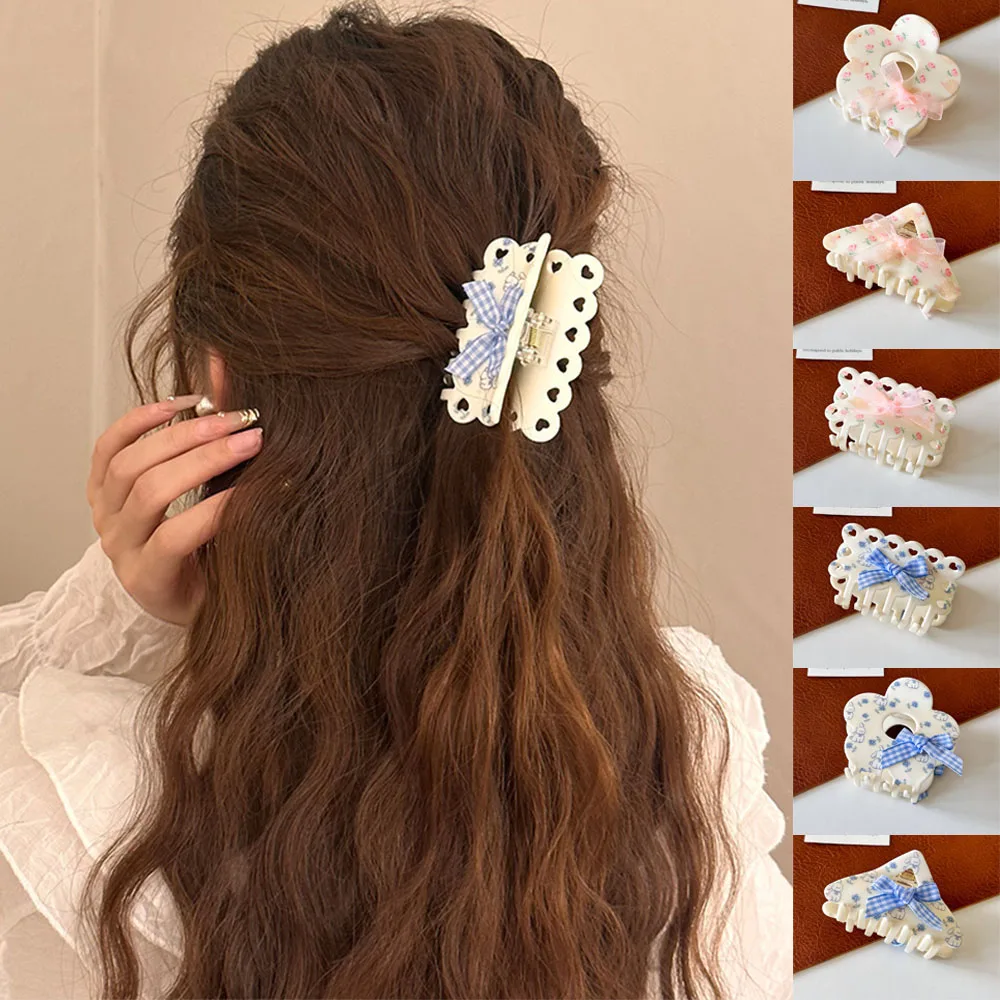 Заколка для волос в Корейском стиле женская акриловый зажим с бантом и цветами - купить