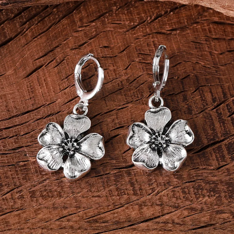 Отзывы о Винтажные серебряные металлические серьги в форме цветка для женщин простые