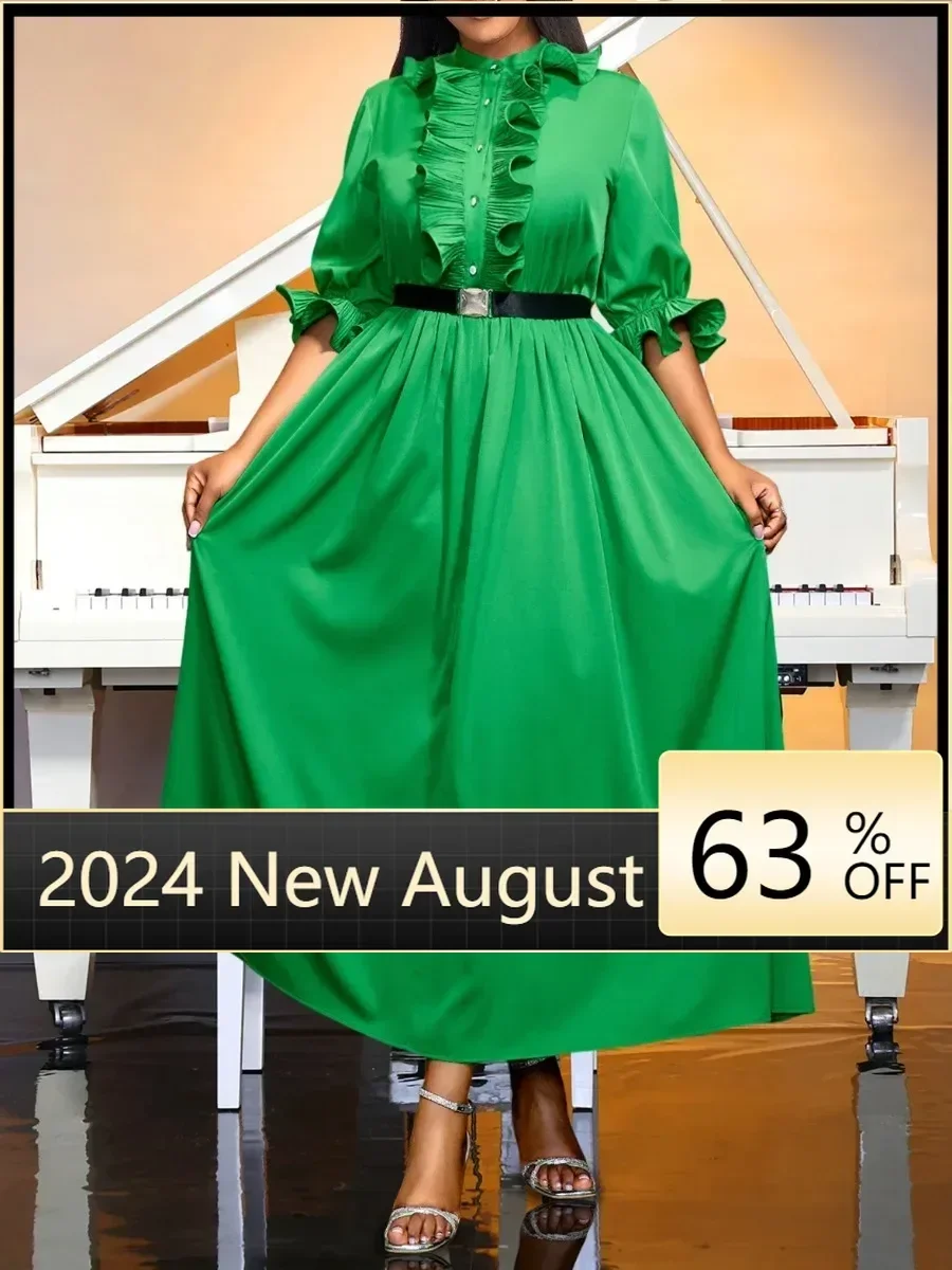 Отзывы о Элегантное женское длинное платье с зелеными складками круглым вырезом рюшами